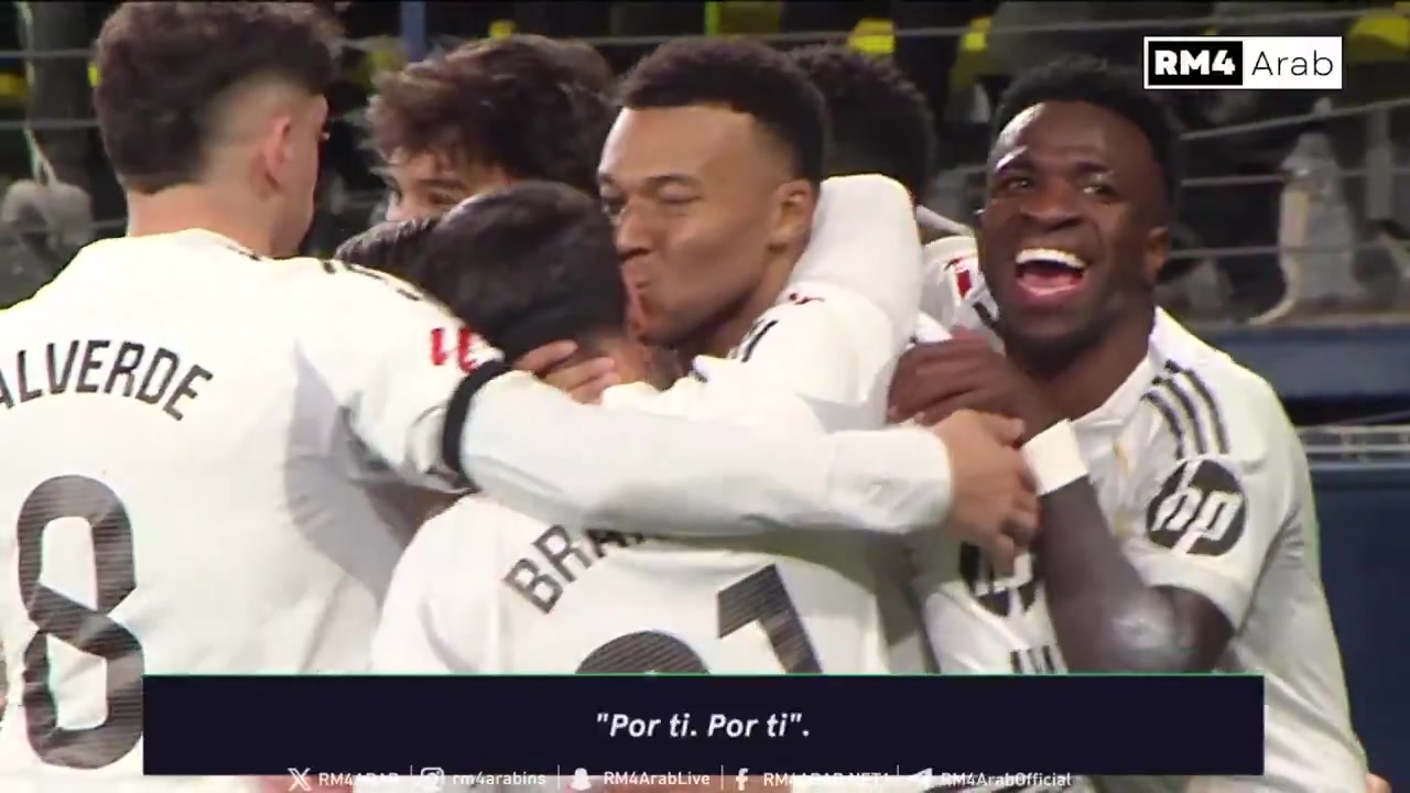 01月25日讯 西甲第21轮,皇马客场应战 2-0击败比利亚雷亚尔,赛前黄潜在主场作战 庆祝塞内加尔中场球员盖耶夺得非洲杯时,导播将镜头对准了布拉欣·迪亚斯。