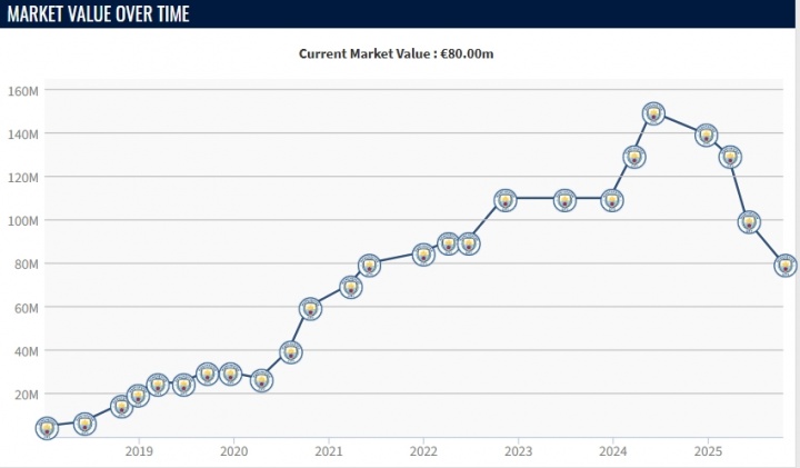 本赛季福登代表曼城各赛事出战13场赛事 ,苏超直播贡献5粒得分 和3次助功 。目前25岁的福登德回转 价为8000万欧元,而在2024年同期,正值巅峰期 的福登最高身价曾达到1.5亿欧。在过去的1年时间里,福登的身价下跌了7000万欧元。