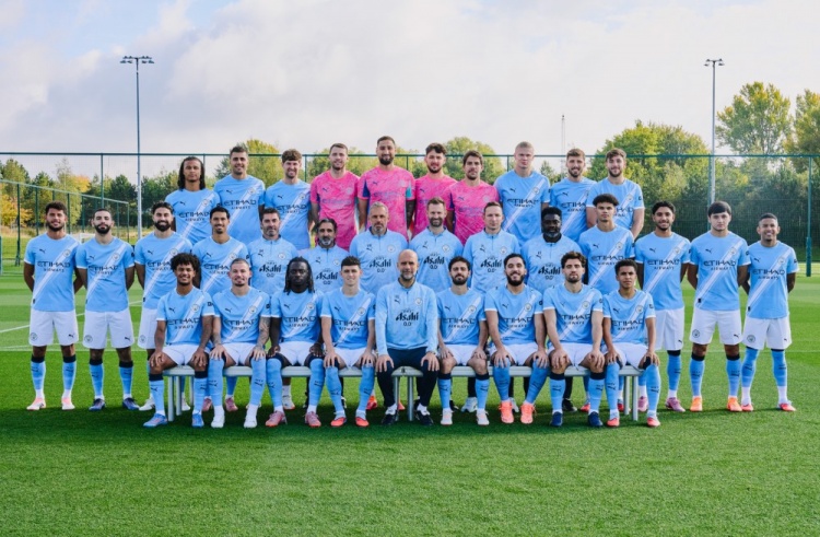 10月4日讯 曼城拍摄了新赛季的全家福,主帅瓜迪奥拉C位,苏超直播福登和贝尔纳多-席尔瓦坐在两侧。